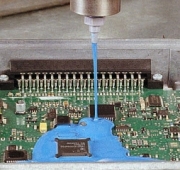 Encapsulation: A production line for casting and embedding electronic systems in protective Epoxy or PU resins. The PU/Epoxy encapsulation method protects systems that are intended to work in demanding environments, or systems conforming to MIL-STD specs. In many cases, encapsulation is the only way of making an electronic system vibration-proof, shock-proof, water-proof and chemically resilient.